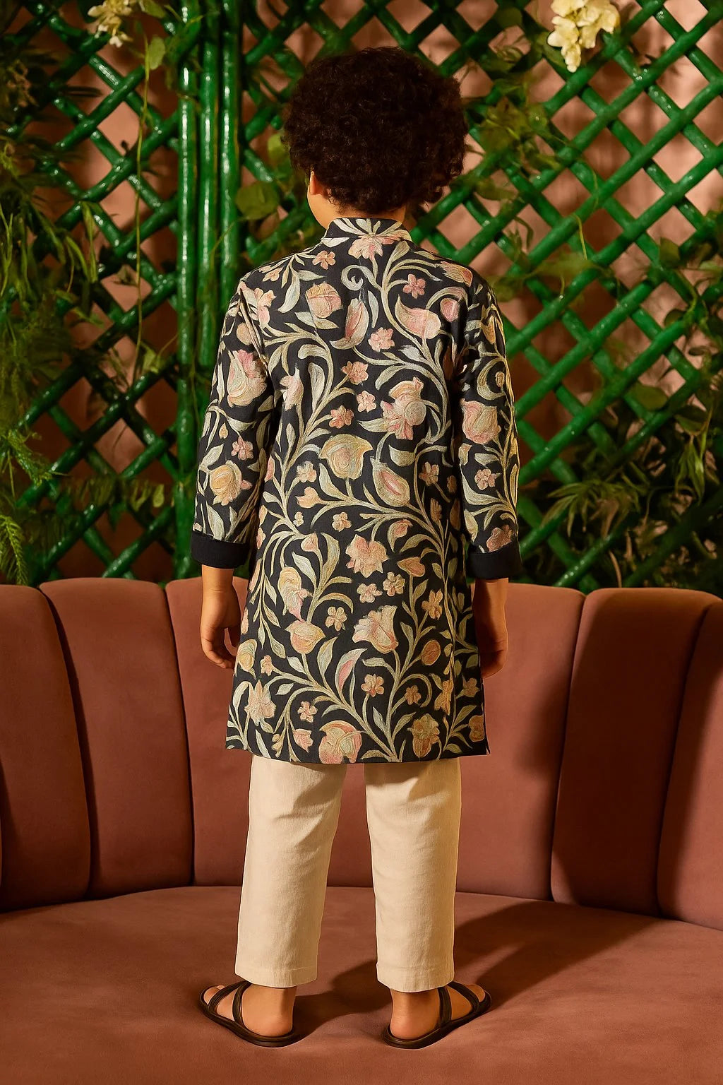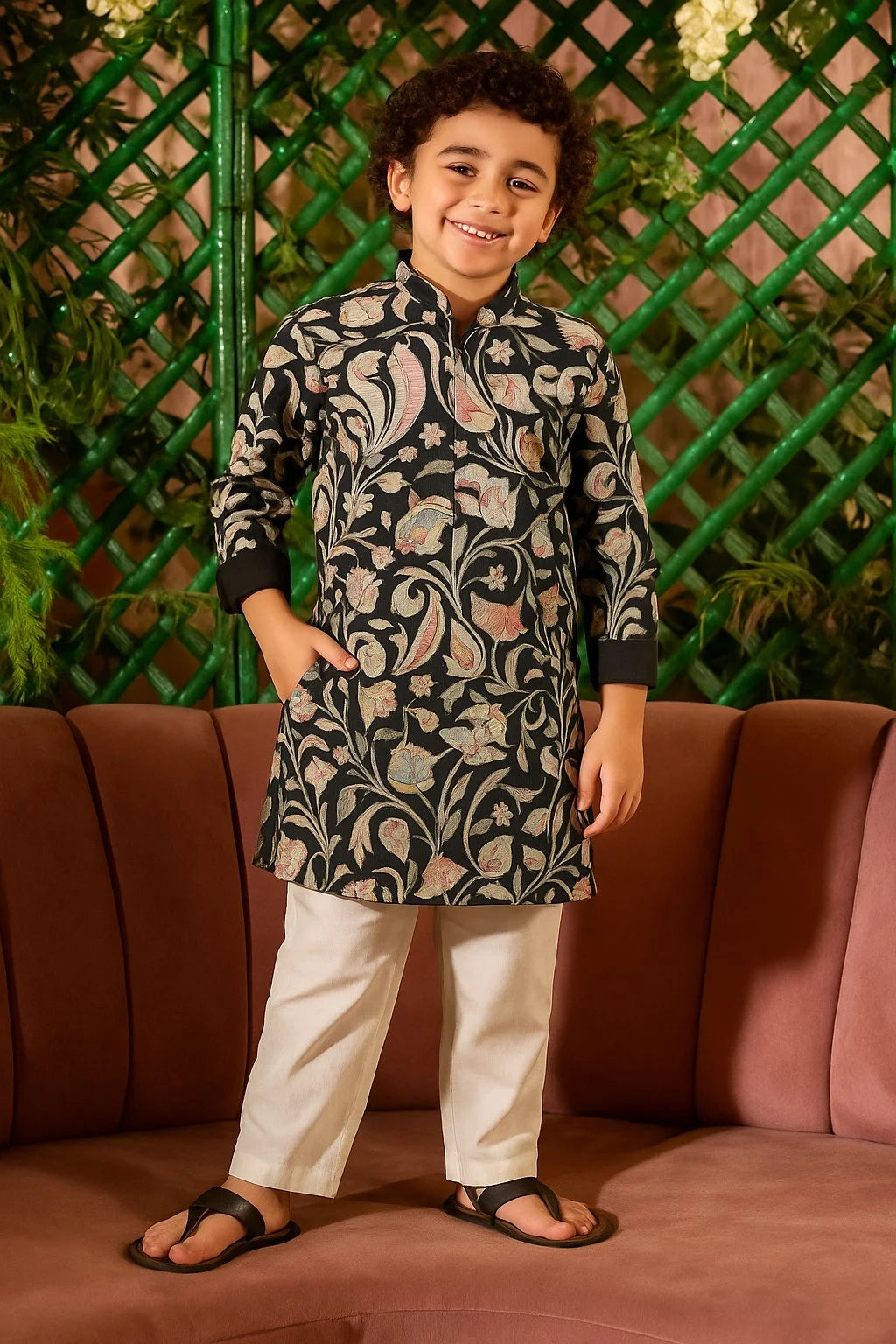 (Trending keywords: boys kurta pyjama, black floral kurta for boys, cotton kurta pyjama for boys, Jaipur kidswear, traditional dress for boys)