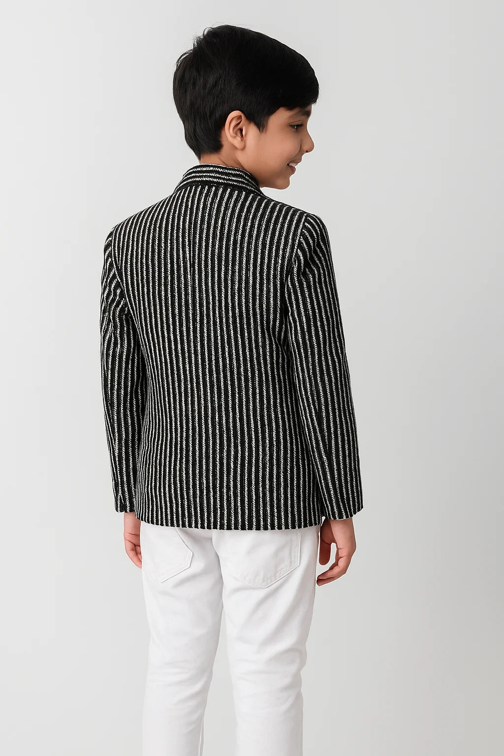 Smart Black Striped Boys Blazer with T-Shirt for wedding