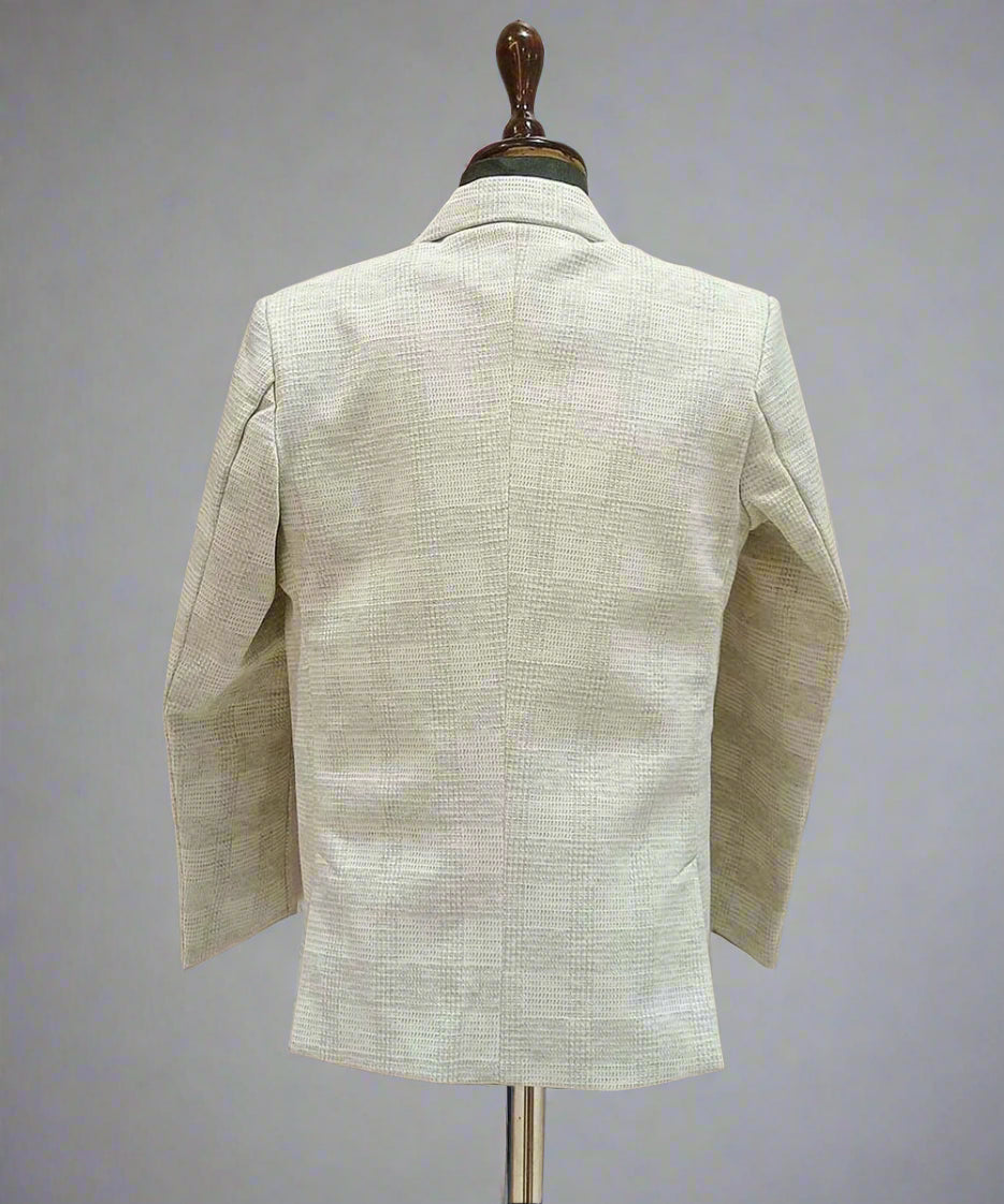 Greyish-White Check-Textured Blazer with a Black T-Shirt for Boys