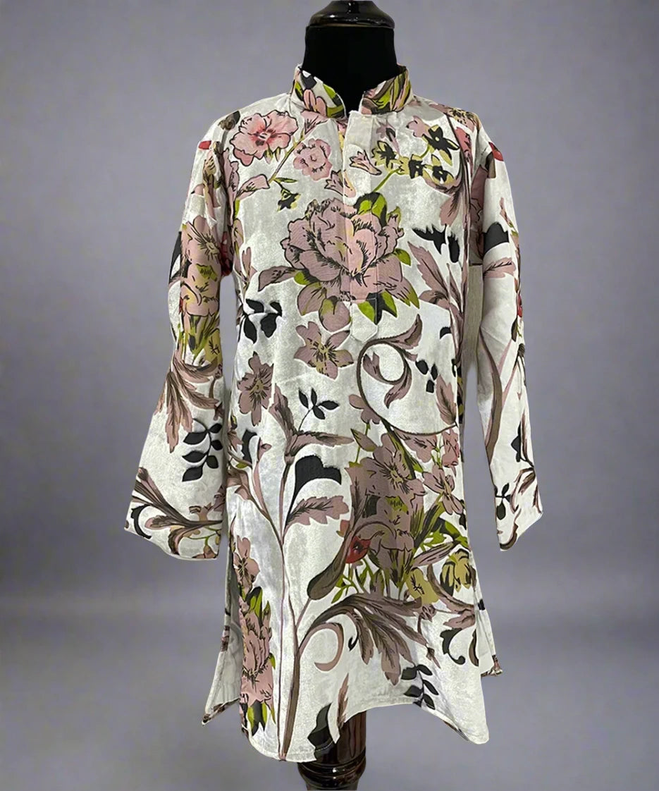 The vibrant print and comfortable silhouette make it a favourite for casual kurta pyjama for boys, Jaipur and ethnic wear for boys Jaipur.