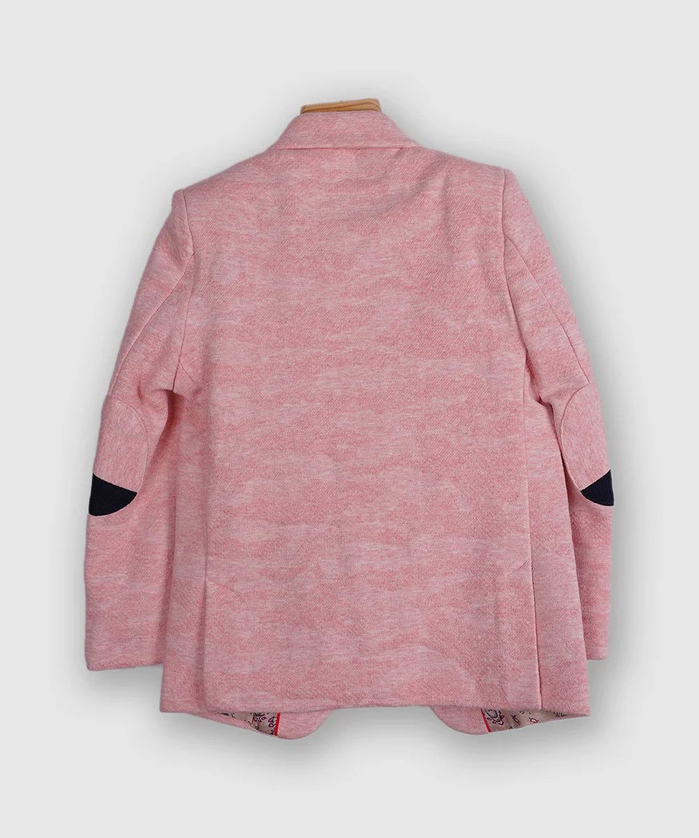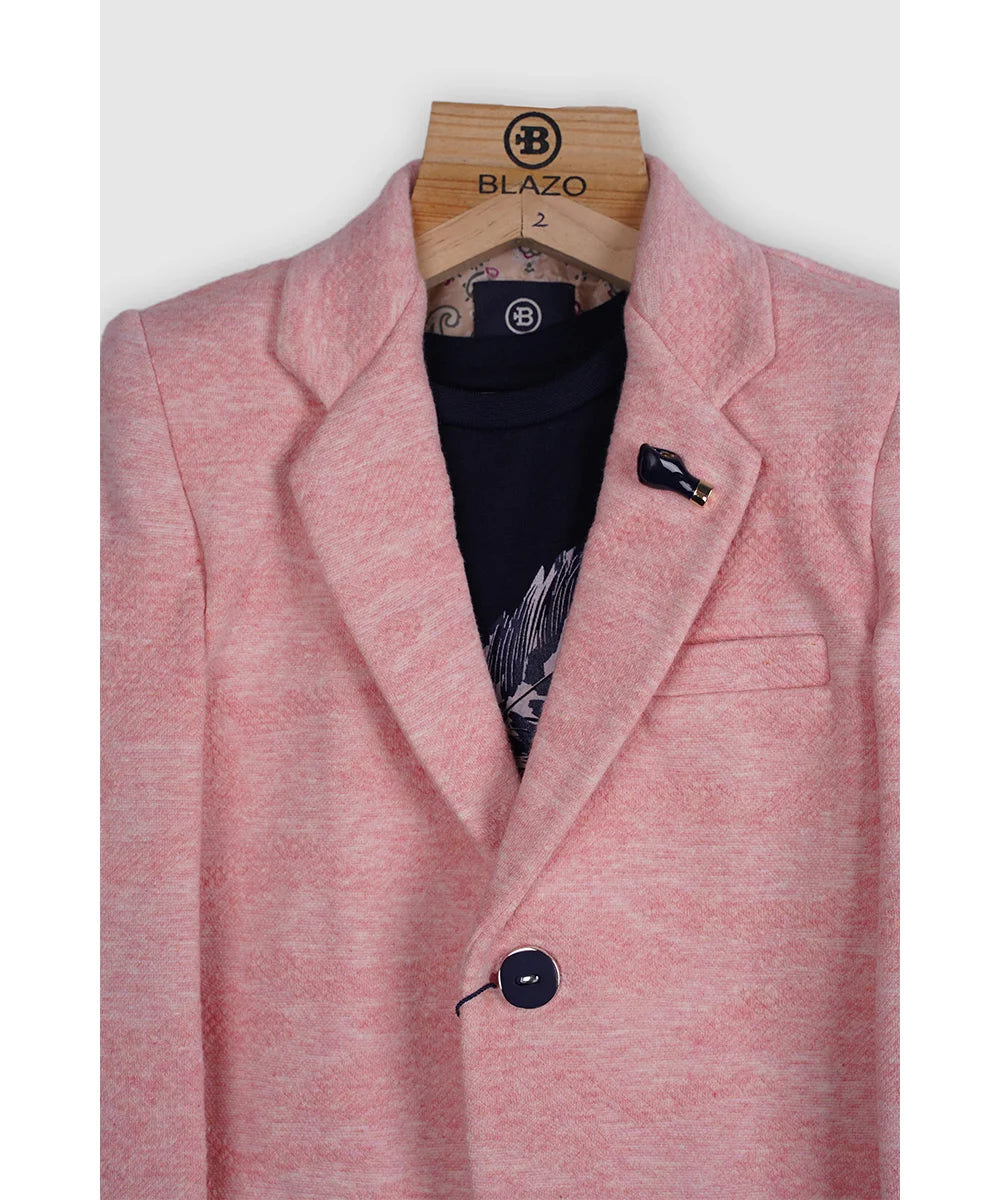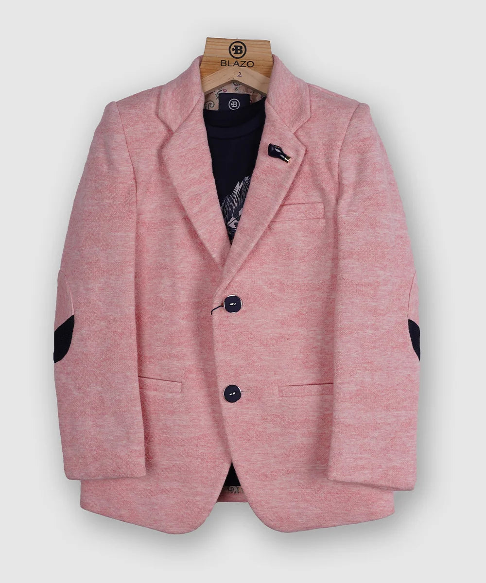 It is a beautiful light pink color, textured blazer that features a cute broach and a patch elbow detailing on the sleeves. It comes with a matching half sleeves round neck blue Colored t-shirt. It’s perfect for weddings, parties, outings, any family function and gatherings. This Kids party wear dress is a superb way to create an exclusive look for your child. Devils n Angels bring for its esteemed customer's best kids wear blazer for boys of different age groups and sizes. These boy's blazer are available in various fabric materials like cotton, velvet, and linen.