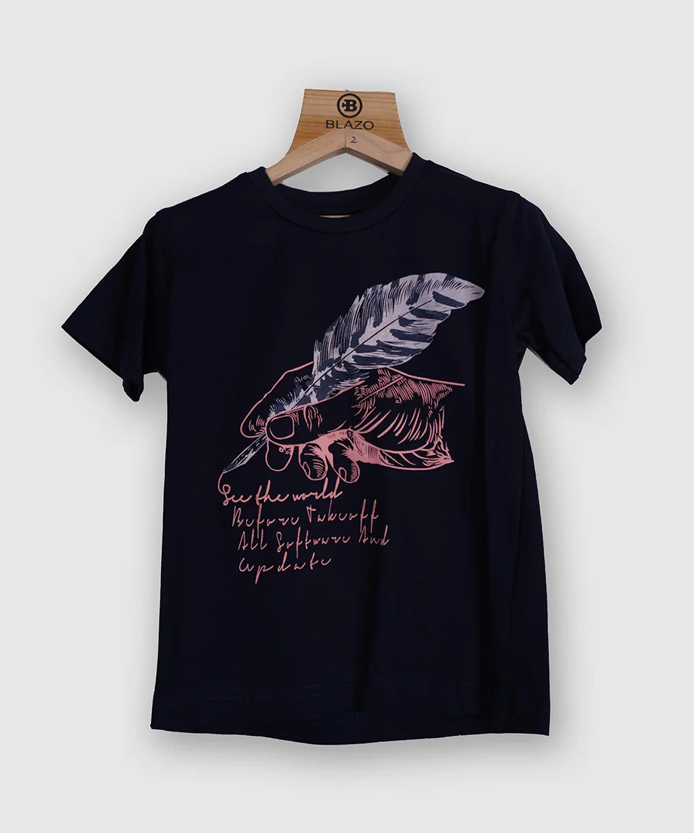It is a beautiful light pink color, textured blazer that features a cute broach and a patch elbow detailing on the sleeves. It comes with a matching half sleeves round neck blue Colored t-shirt.