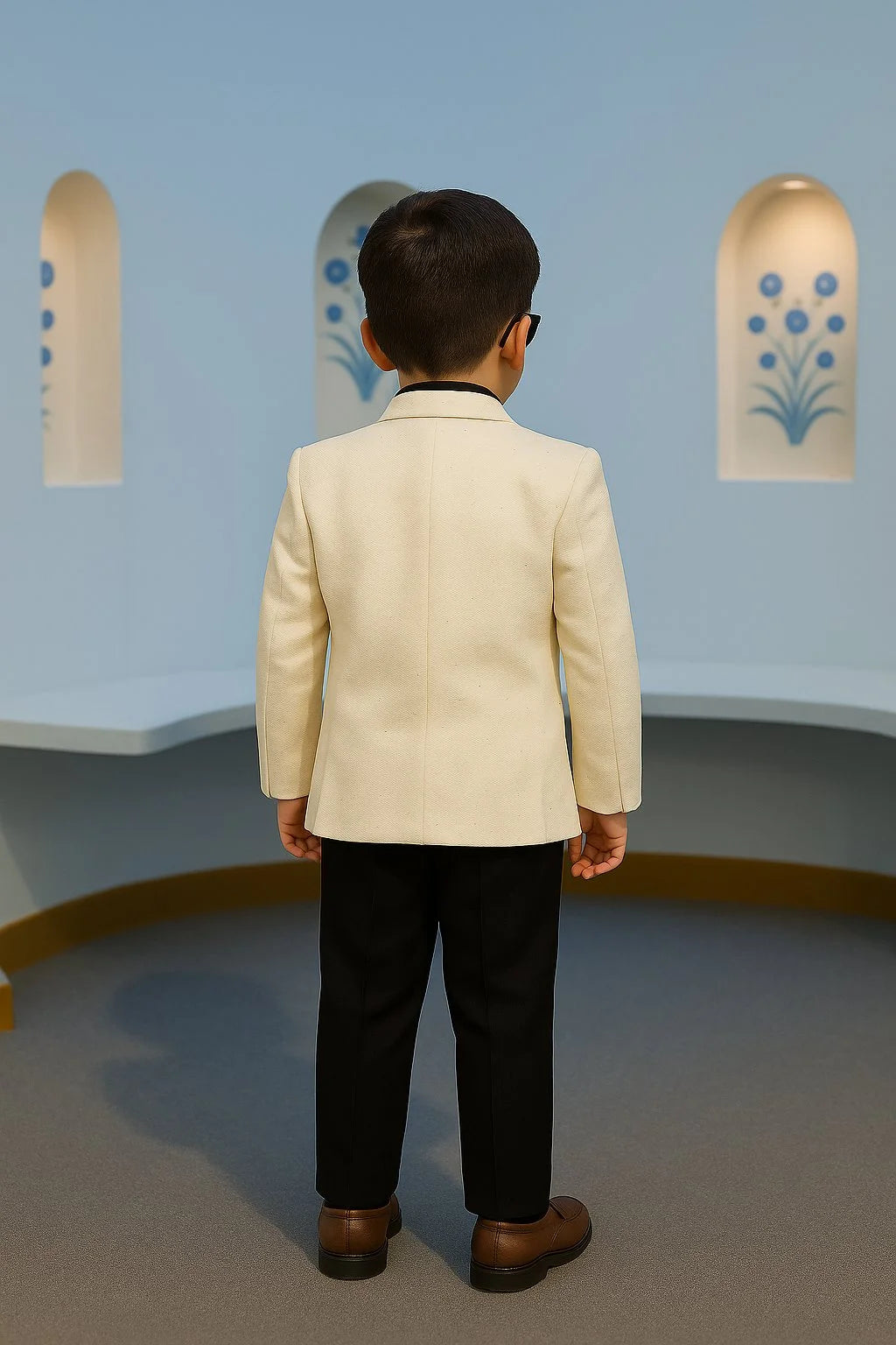 Tailored in comfortable cotton‑blend suiting fabric to keep kids easy and crisp through long events, ideal as wedding wear for kids boys and evening functions.