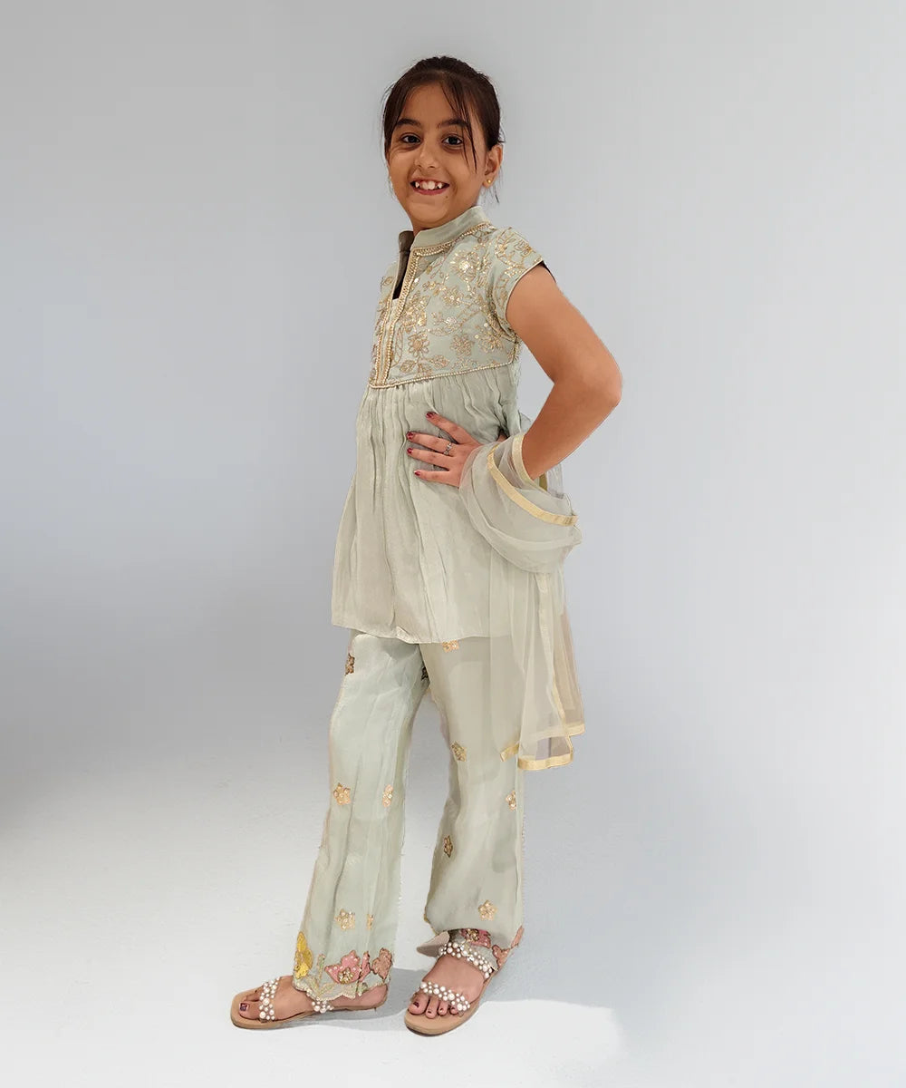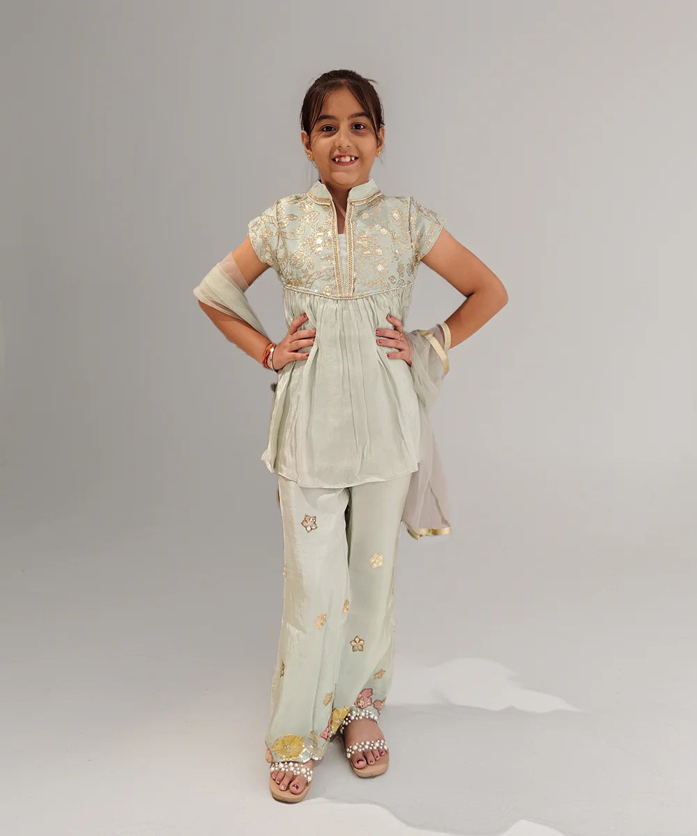 Pista Green Palazzo Set for Girls – Best Wedding Palazzo Suit for Kids in Jaipur