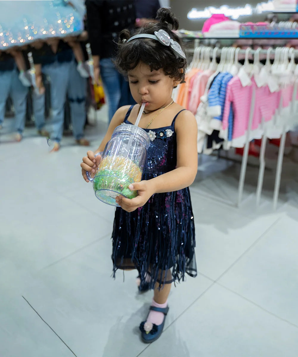 Navy Color Sequin Party Wear Dress for Girls