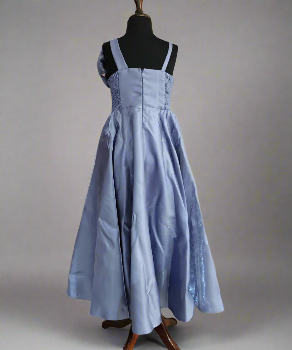 Stunning powder blue gown for girls, crafted in a shimmering solid finish for a princess-inspired look—ideal for ages 2–14 years