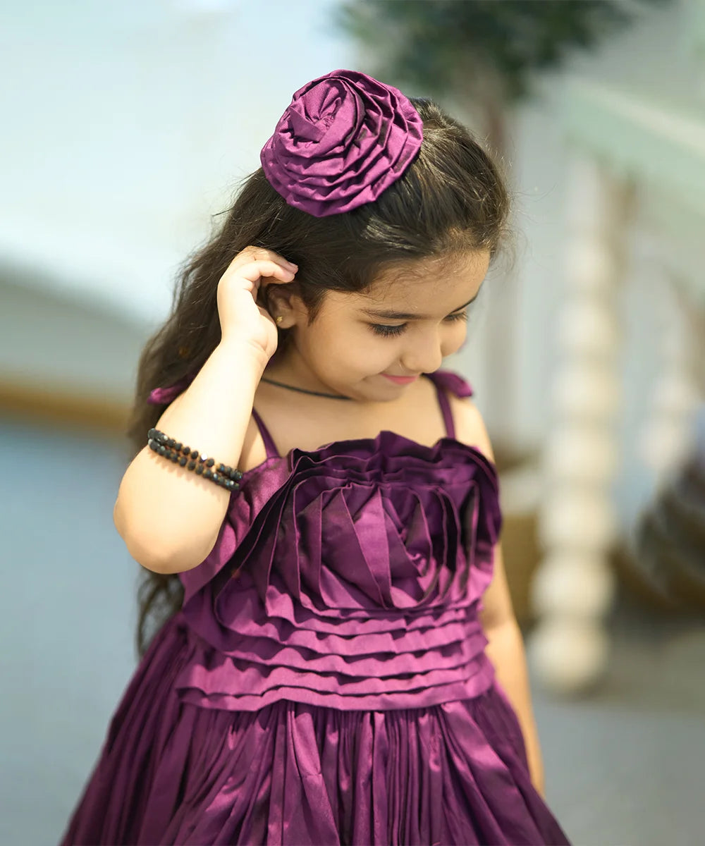 Striking wine color designer up-and-down party wear gown for girls (ages 2–14 years), perfect for birthdays, weddings, and festive occasions in Jaipur, crafted to make your child the center of attention at every celebration