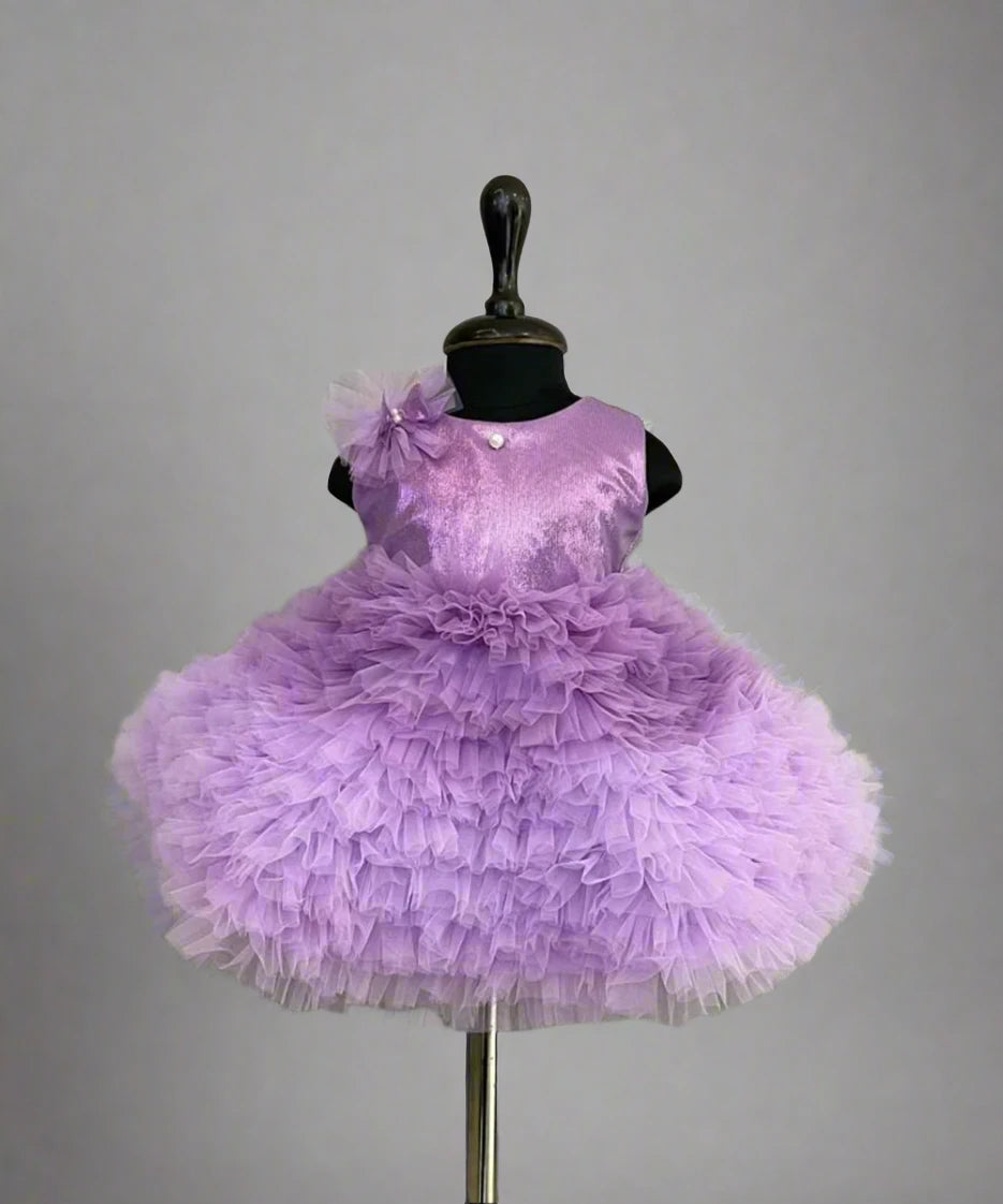 adorable purple frilly shimmery frock for baby girl