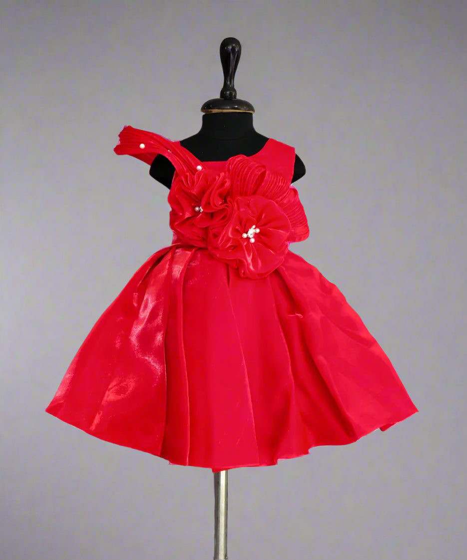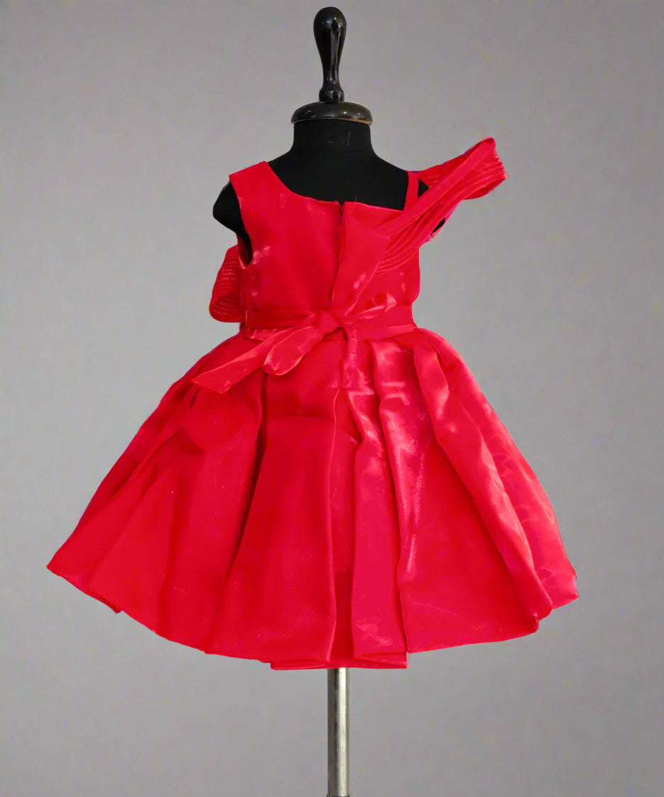 Striking red birthday frock for girls crafted in blended fabric, available at the top-rated kidswear shop in Jaipur—perfect for parties and special occasions.