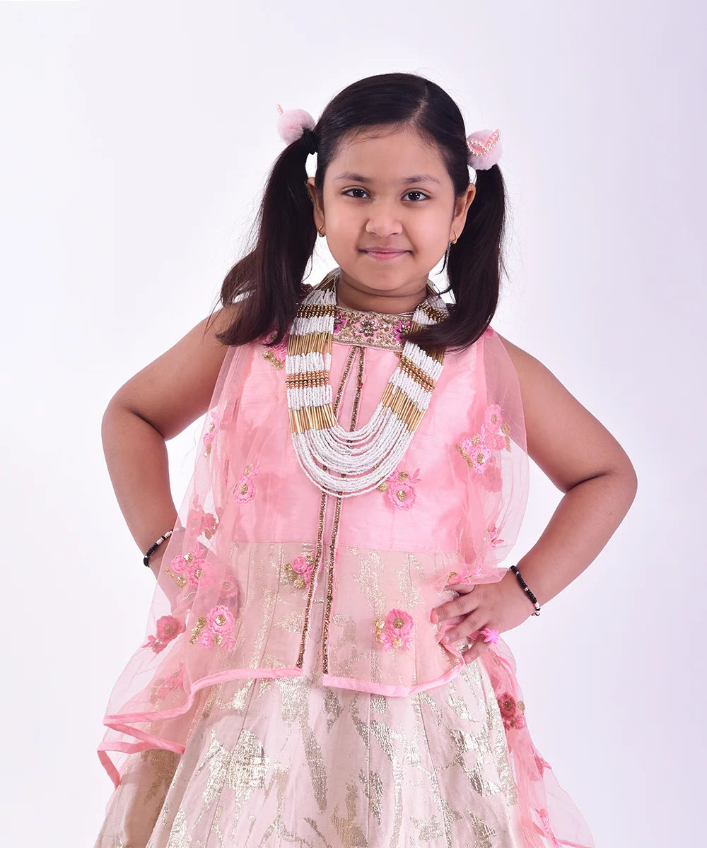 • Description: It is a beautiful party wear kids gown online that comes with a jacquard skirt.