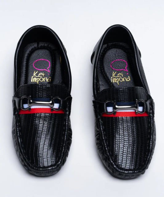 Kids' Brown Textured Loafers with Designer Buckle – Jaipur