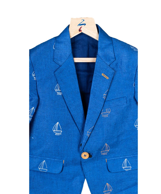 Printed Royal Blue Colored Blazer for Party for 6 year old Boy