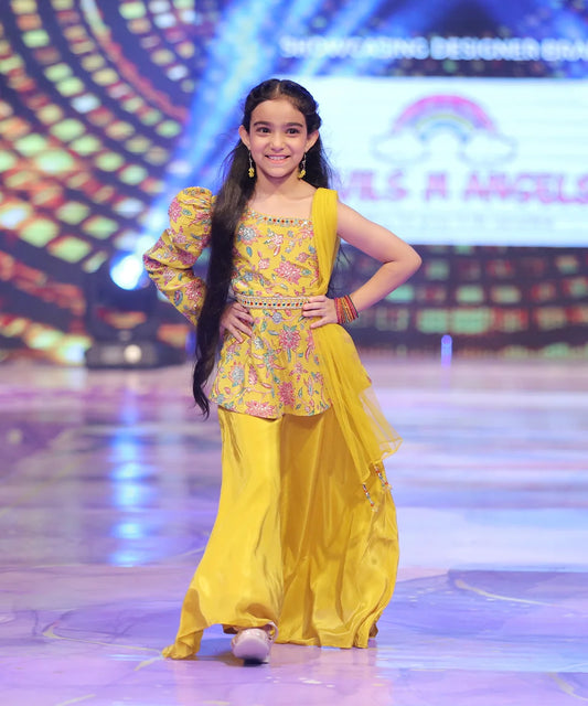 Trendy Yellow Palazzo Set for Kids – Jaipur Ethnic Wedding Collection