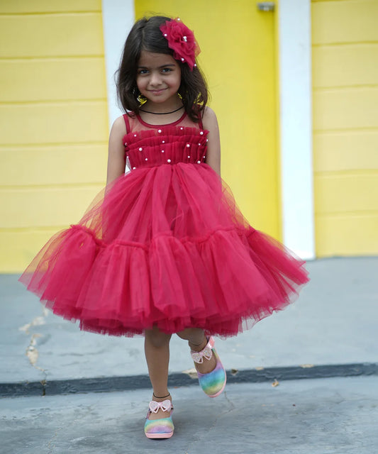 Maroon Ruffle Party Wear Gown for Girls – Jaipur Kids Fashion Boutique