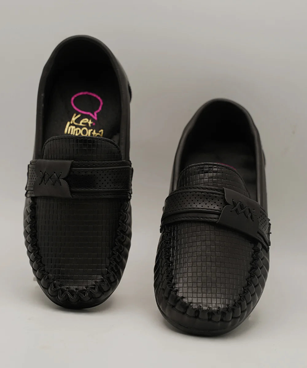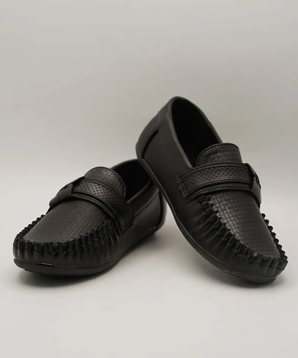 Boys' Designer Black Slip-On Loafers with Textured Finish – Jaipur