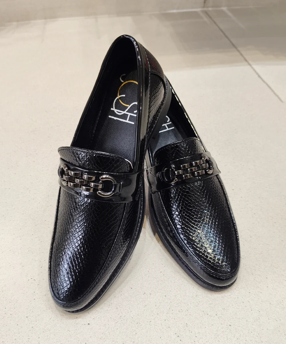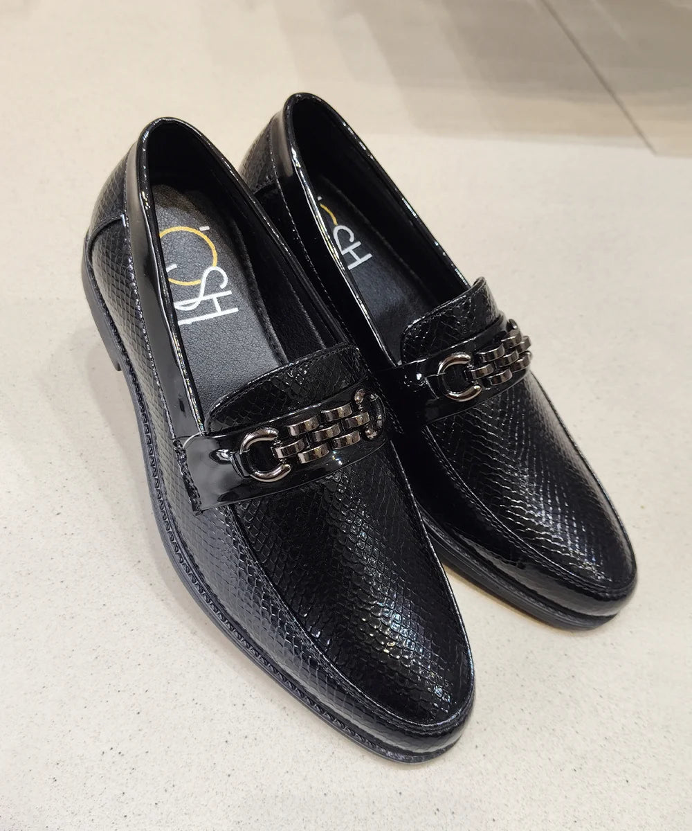 • Stylish black loafers for boys with a shiny finish and light textured design for a classy look.