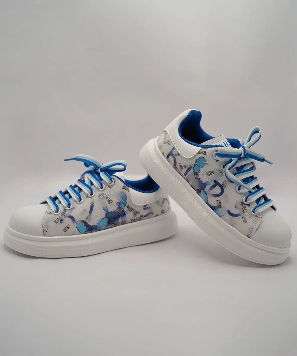 Kids' Blue & White Cartoon Print Sneakers with Blue Laces (Ages 1–8) – Jaipur