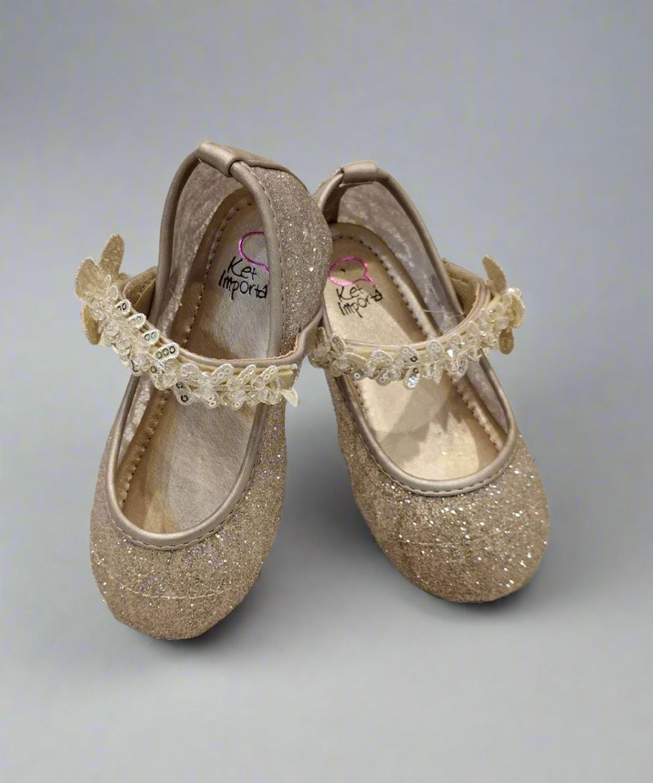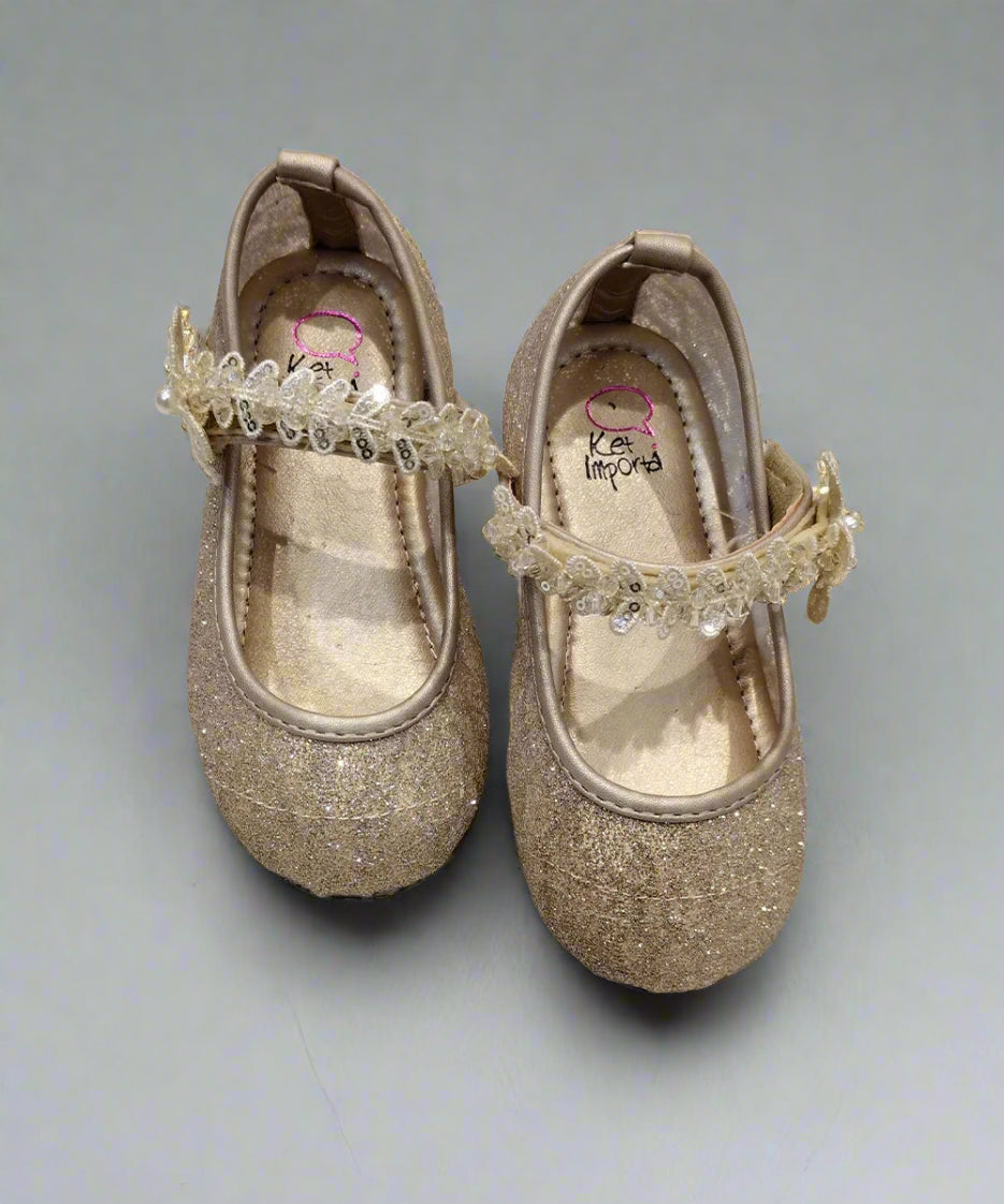 Kids' Sparkling Gold Party Shoes with Butterfly Strap – Jaipur