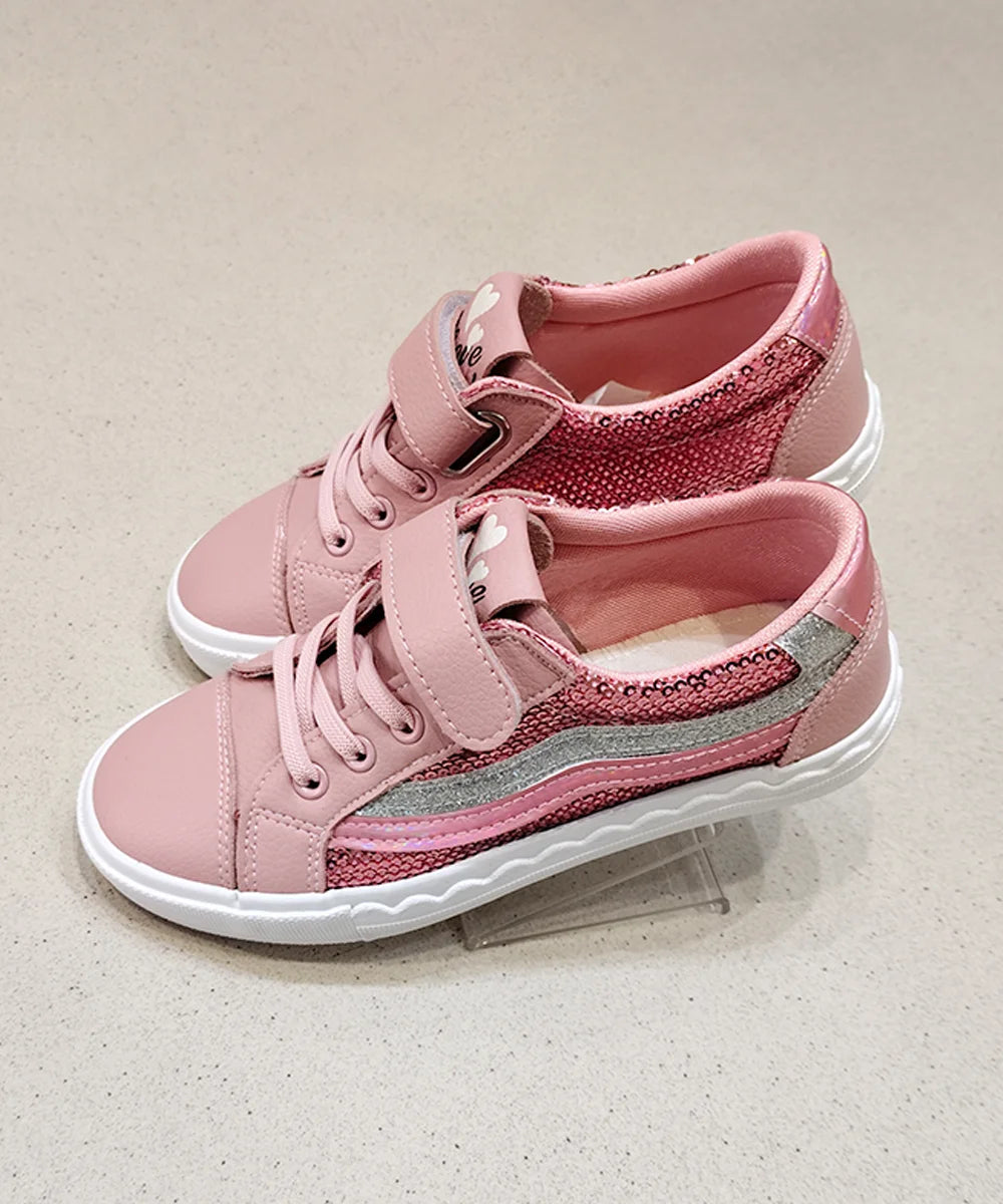 Designer Girls pink Sneaker with Sequin Shine | Jaipur Kids Shoes Showroom