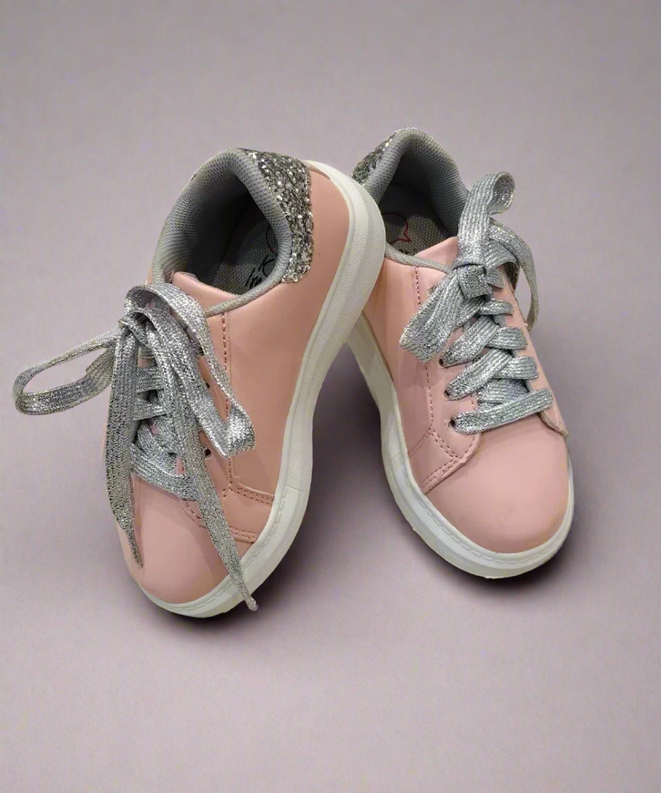 Girls' Pink Sneakers with Silver Glitter Star & Laces (Ages 1–8) – Jaipur
