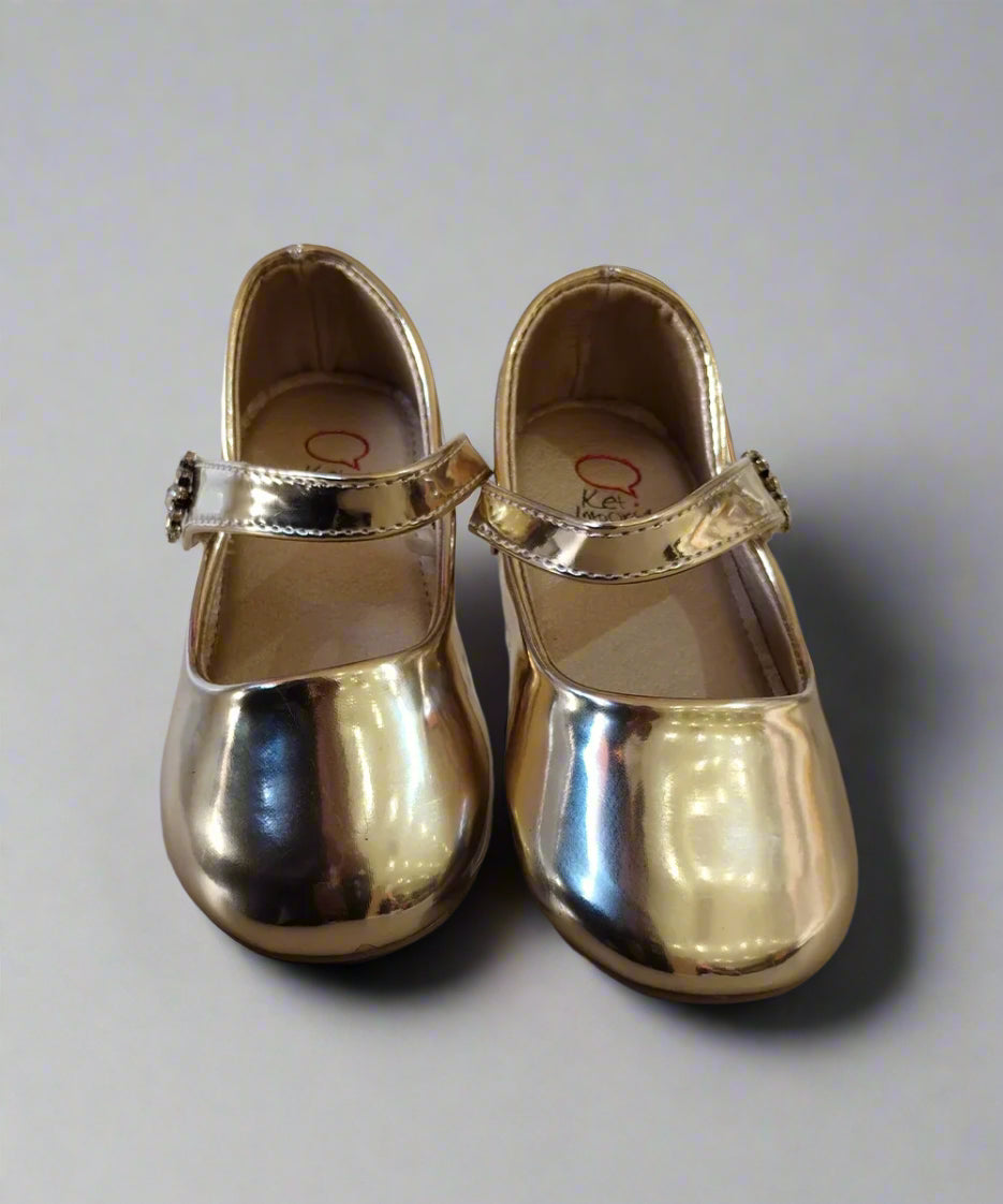 Kids' Shiny Gold Party Flats for Girls with Embellished Strap – Jaipur