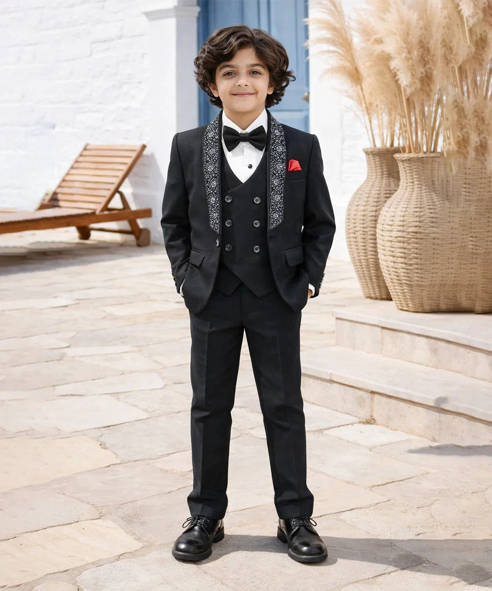 Classic Black Boys Tuxedo Suit with Sequin Lapel - Party Wear Jaipur
