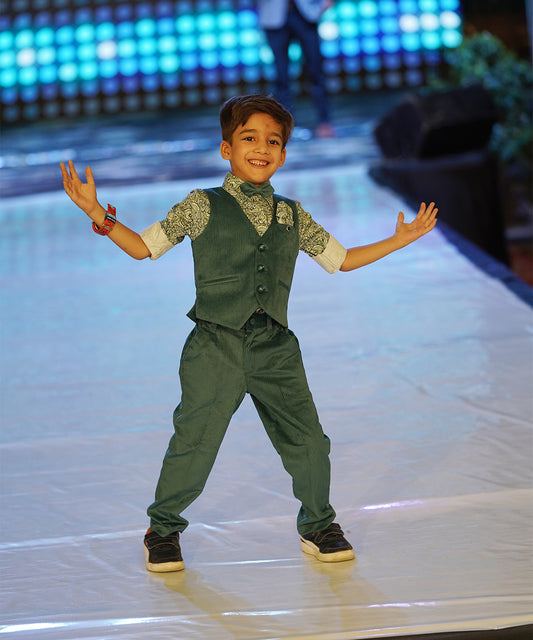 Green Colored Self-Printed Waist Coat Set for Boys