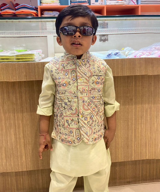 Yellow Boys Kurta Pyjama Jaipur | Nehru Jacket Kids Ethnic Set
