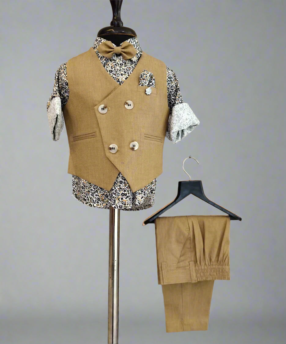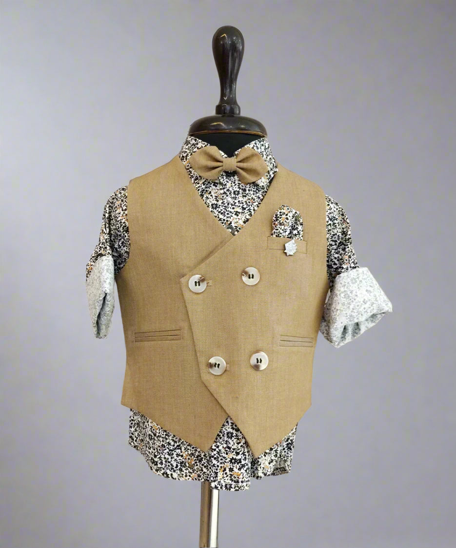 Birthday Party Wear Waist Coat Set With Printed Shirt For Boys