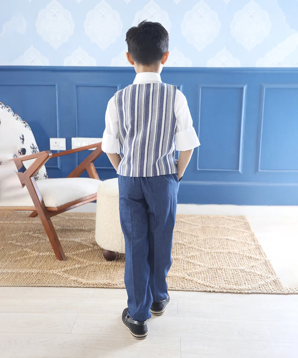 Blue Coloured Self-Striped Waist Coat Set for Boys