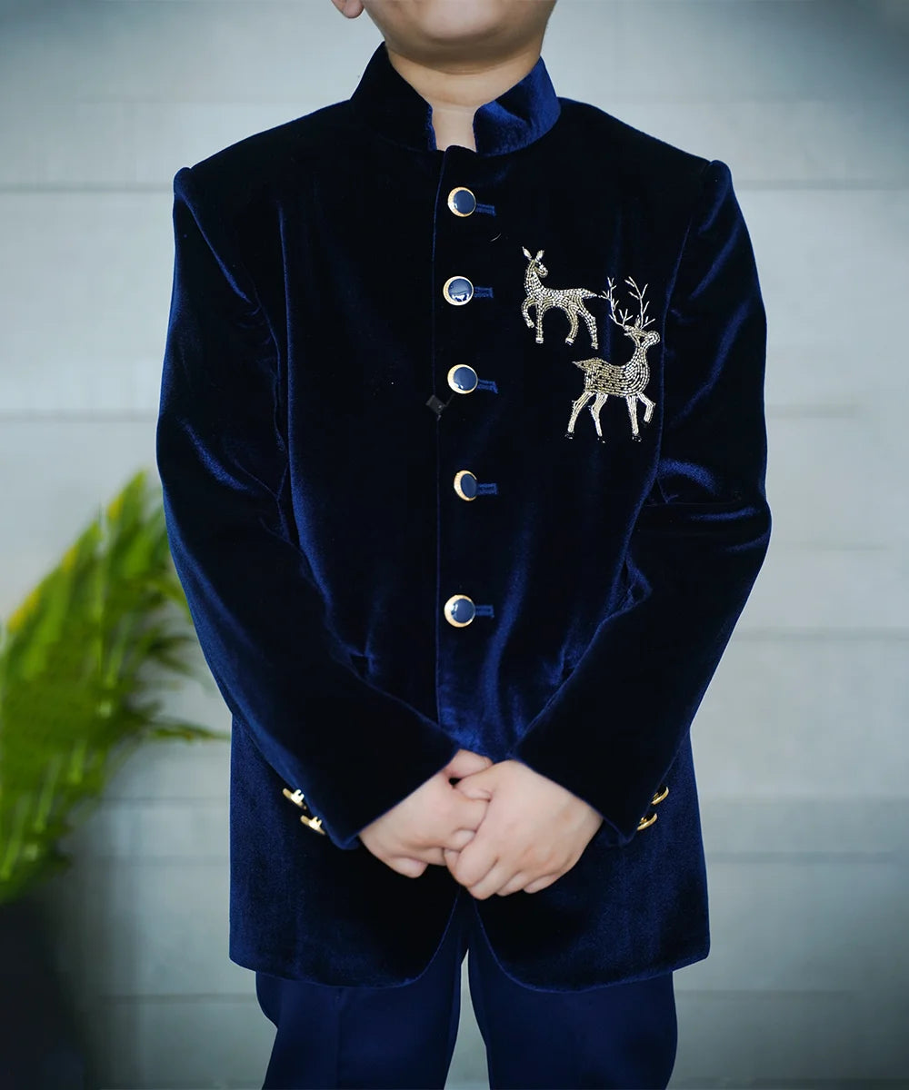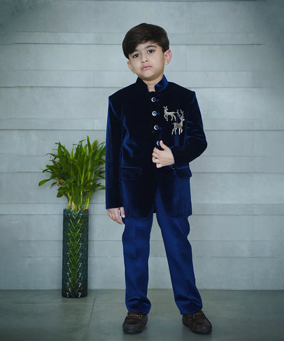 Navy Velvet Jodhpuri Suit for Boys Jaipur | Kids Partywear Bandhgala