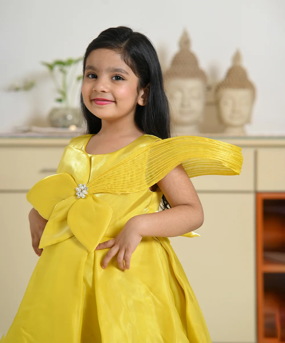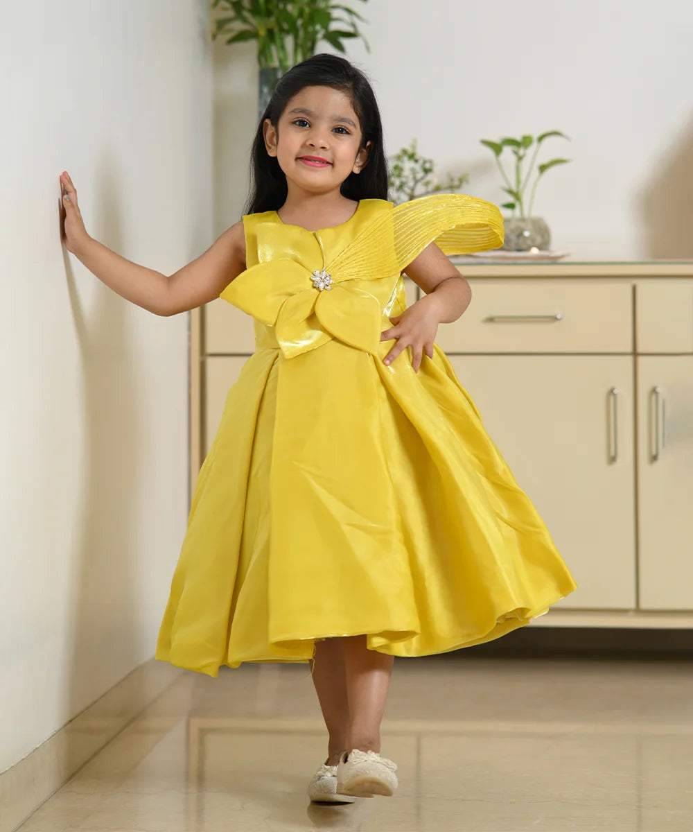 Neon Yellow Box Pleated Birthday Frock – Jaipur Kidswear Showroom