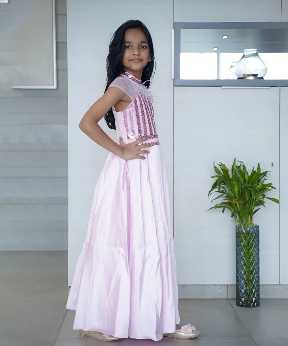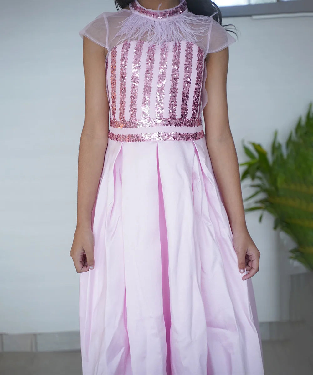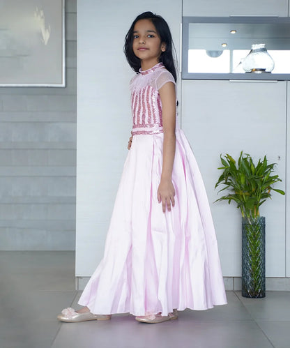 Elegant pink party wear gown for girls (ages 2–14 years), perfect for birthdays, weddings, and festive occasions in Jaipur, designed to make your child stand out at every celebration