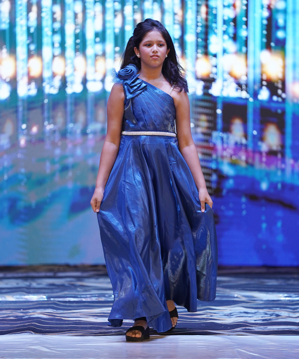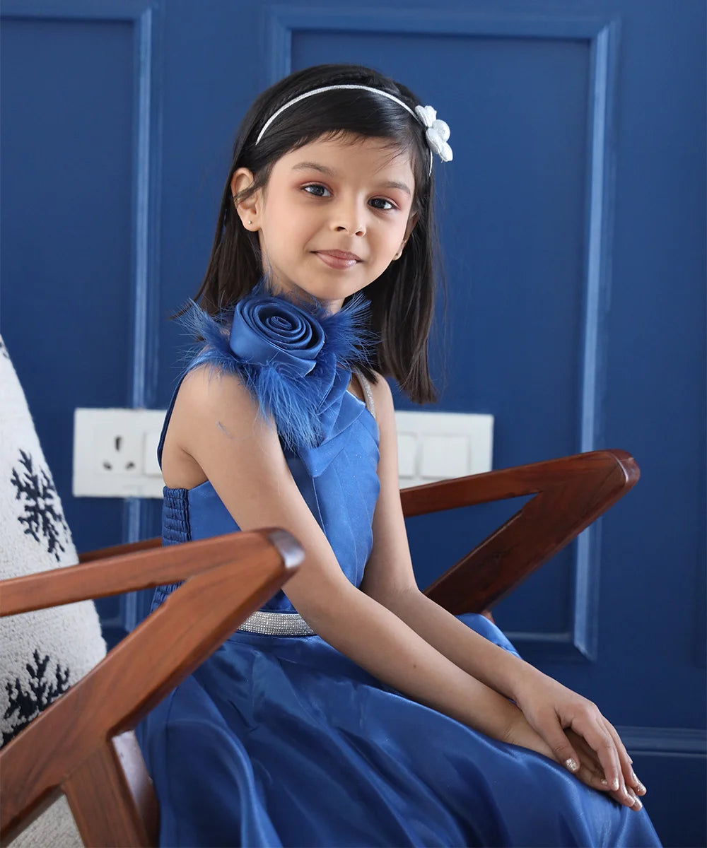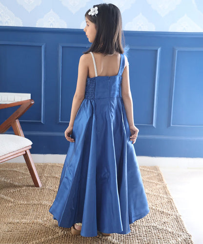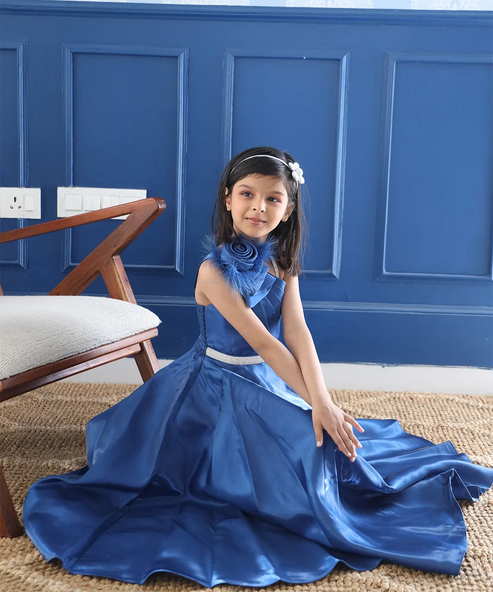 Elegant navy blue designer gown for girls (ages 2–14 years), perfect as a birthday party gown or wedding gown for girls, crafted for standout style at Jaipur celebrations