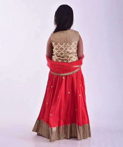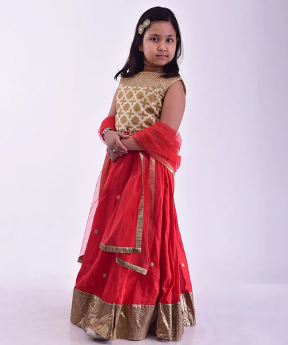 Red Cream Kids Lehenga Jaipur | Embroidered Wedding Party Wear